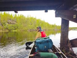 We ran into a solo fisherman at the first portage and a family group heading the opposite way on our second portage. The portaging is where the real work happens. Due to having fresh food along for this trip, our food pack and barrel are by far the heaviest. I try to carry these as little as possible, as does everyone else.
