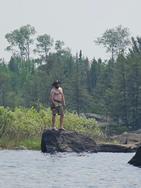 On the Isabella River, we decide to stop at campsite #1938 also known as the Stonehenge site. This will make today a little easier and we plan on tackling the rest of the river tomorrow. The site is nice but it’s fairly compact next to the fire area. If you weren’t careful, you could easily burn a hole in your tent. Upon arriving, the first order of business is always to set up the tents and air pads. I find that it’s important to take care of that right away, no matter how early you arrive. We climb up on some rocks to get a better view of the surrounding area which is neat because of how far you can see because of the Pagami Creek Fire in 2011.