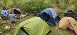It’s another beautiful sunny morning in camp. I really can’t emphasize enough how fantastic the weather has been. No rush today so we take our time making some breakfast sandwiches. They are always a hit but it’s more than I want to eat in the morning sometimes. It has me debating about only doing oatmeal/granola/snacks and precooked bacon for breakfasts. There’s always so much to do in the morning and cooking a meal takes some time and energy, especially with a fire. This may be a question I propose to the group next year. Oatmeal could get tiring after a few days but I’m sure I can find a way to spice it up a bit.