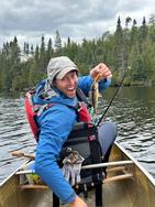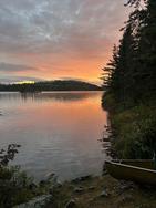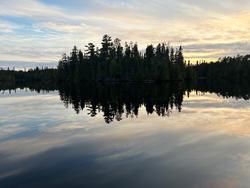 Sunday, September 07, 2025 [paragraph break] Makwa to Polly for Walleye dinner [paragraph break] ~Makwa Lake, Panhandle Lake, Pan Lake, Anit Lake, Kivaniva Lake, Malberg Lake, Koma Lake, Polly, Lake [paragraph break] We broke camp early, around 7AM, encountered the first group since Malberg on Day 1, who must have gotten up early to meet us exiting Makwa shortly after sunrise. We made good time to Panhandle, crossed over and blithely entered the portage southbound for Pan. Turns out there was an older portage east of the current one that has grown over somewhat but not enought to seem unused. After about 40 rods we eventually figured out we were on a parallel path, maybe a couple hundred feet from the existant portage. We are single portagers still, so then had to bushwhack, fully loaded, west until we hit the real portage. This mistake is well documented if you look at the portage details on Paddle Planner, so I feel better that it hasn't just been us, but we really should have realized sooner. We wanted to be well positioned to get out early on 9/8 so we could make it back to the Twin Cities with time to spare so we pushed all the way to Lake Polly for our last night. We took the southernmost site, #2213, which would be good for a very large group as it has ample pads, though many feature spine busting roots aplenty. The put in is quite steep on the bare rock, and this was the only place we were bothered by bugs on the entire trip. Likely the wind dying down had something to do with that, but the view of the island south of the site is quite nice, and we ended up finding walleye very close by, so all in all not such a bad site. We got plenty of walleyes in the bay around the island there, casting gold husky jerks and jigging with chartreuse Berkley ripple shads on 1/8 ounce jigs in 10-15 feet of water. A nice way to put a cap on our trip. [paragraph break]