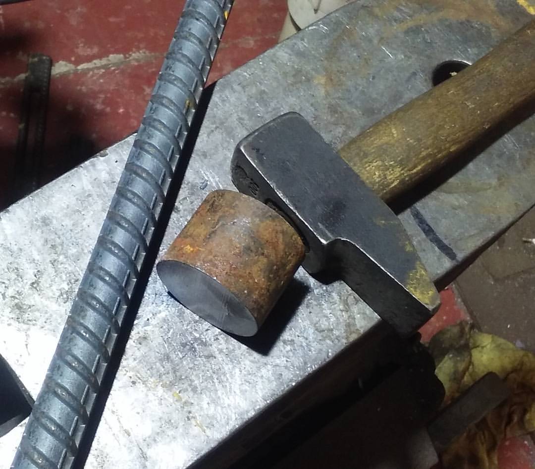 The large piece of about 1 1/2" diameter steel laying in the center is where this blade began its life. it's steel left over from a GM plant auto manufacturing process about 20 years ago. It is no longer available in this form. I'm lucky to have a good supply of it.