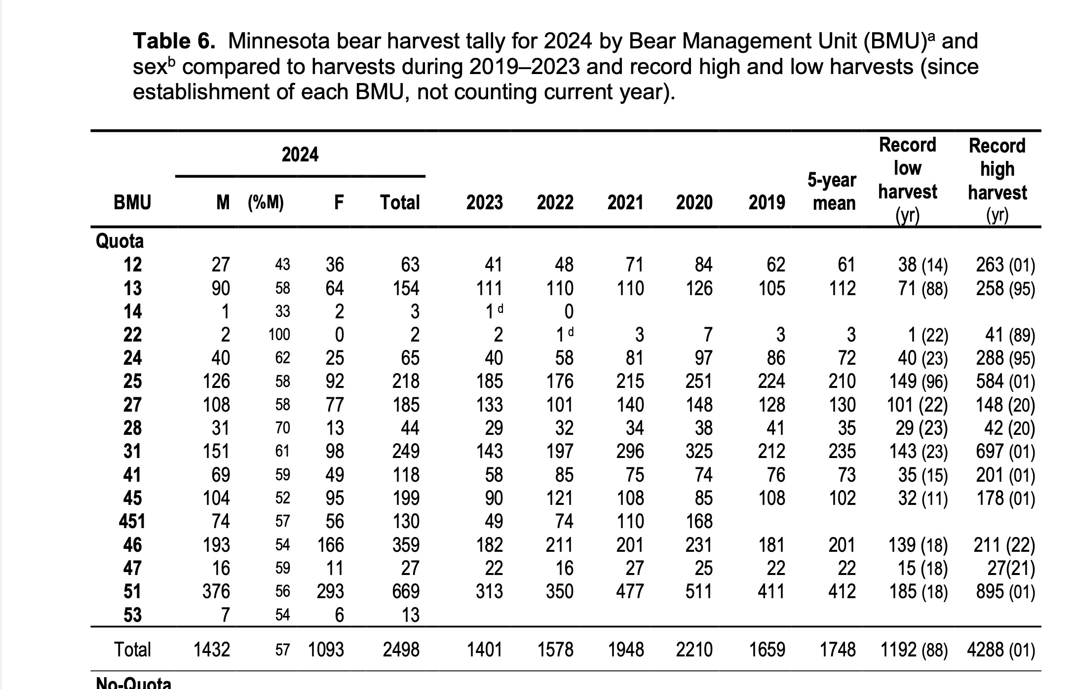 The bear permit area for the BWCA is 22. The results over the last several years clearly show that the number of available permits is not affecting the number of bears taken: