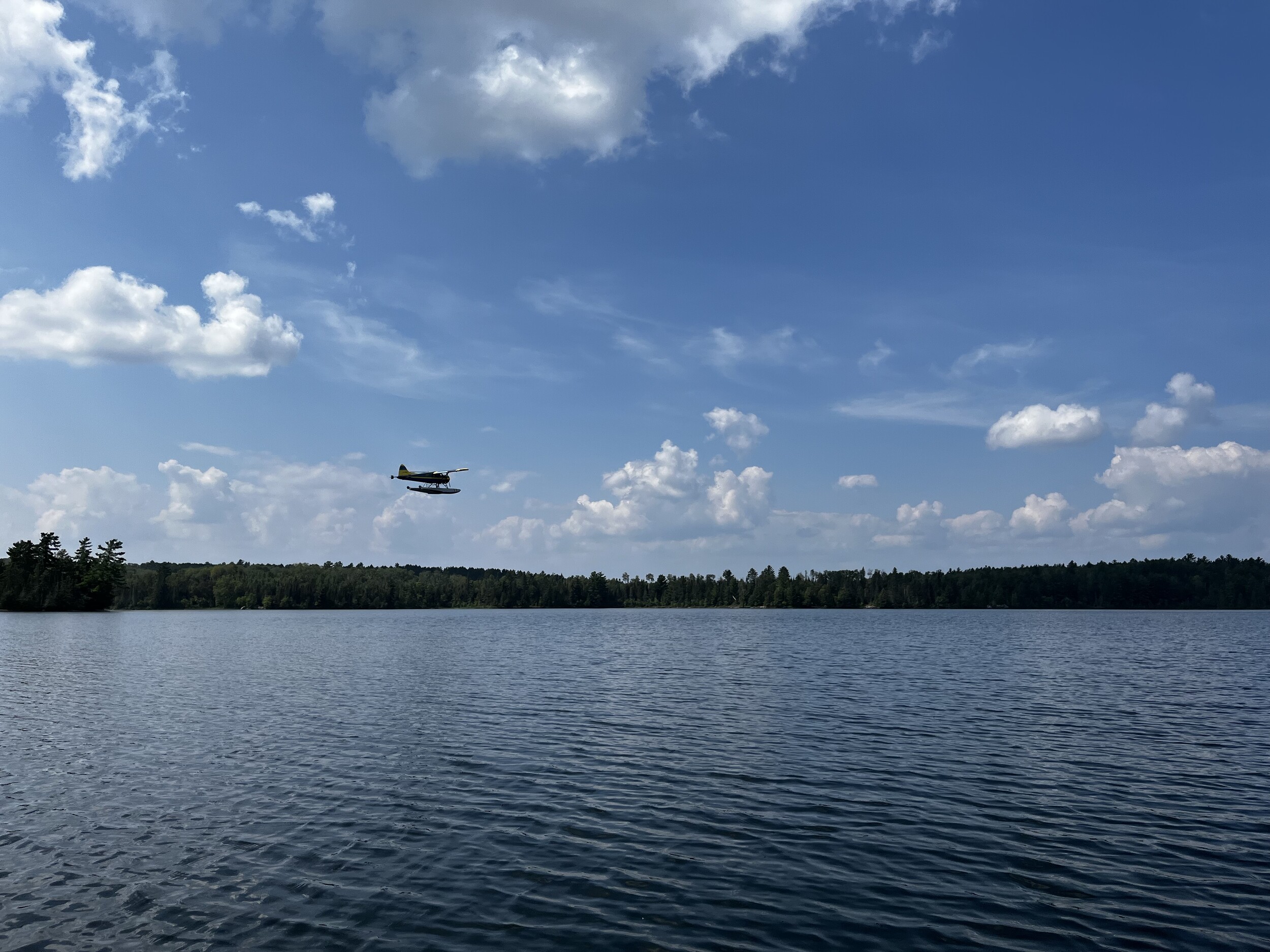 Wednesday, August 21, 2024 Day one into the wilderness. Since we moved our tow back to Noon, we had a nice leisurely prep. Picked up the canoe and went to Moose lake for our tow. Hoped in the boat and up to PP Of course our schedule lands us right at lunch hour so we have to wait for them to return. There was a float plane at the dock. We met some government naturalist coming back from lunch with the ranger. We talked with them and they were doing a official survey of the area. Nice job to have but they weren't camping in the park that night!